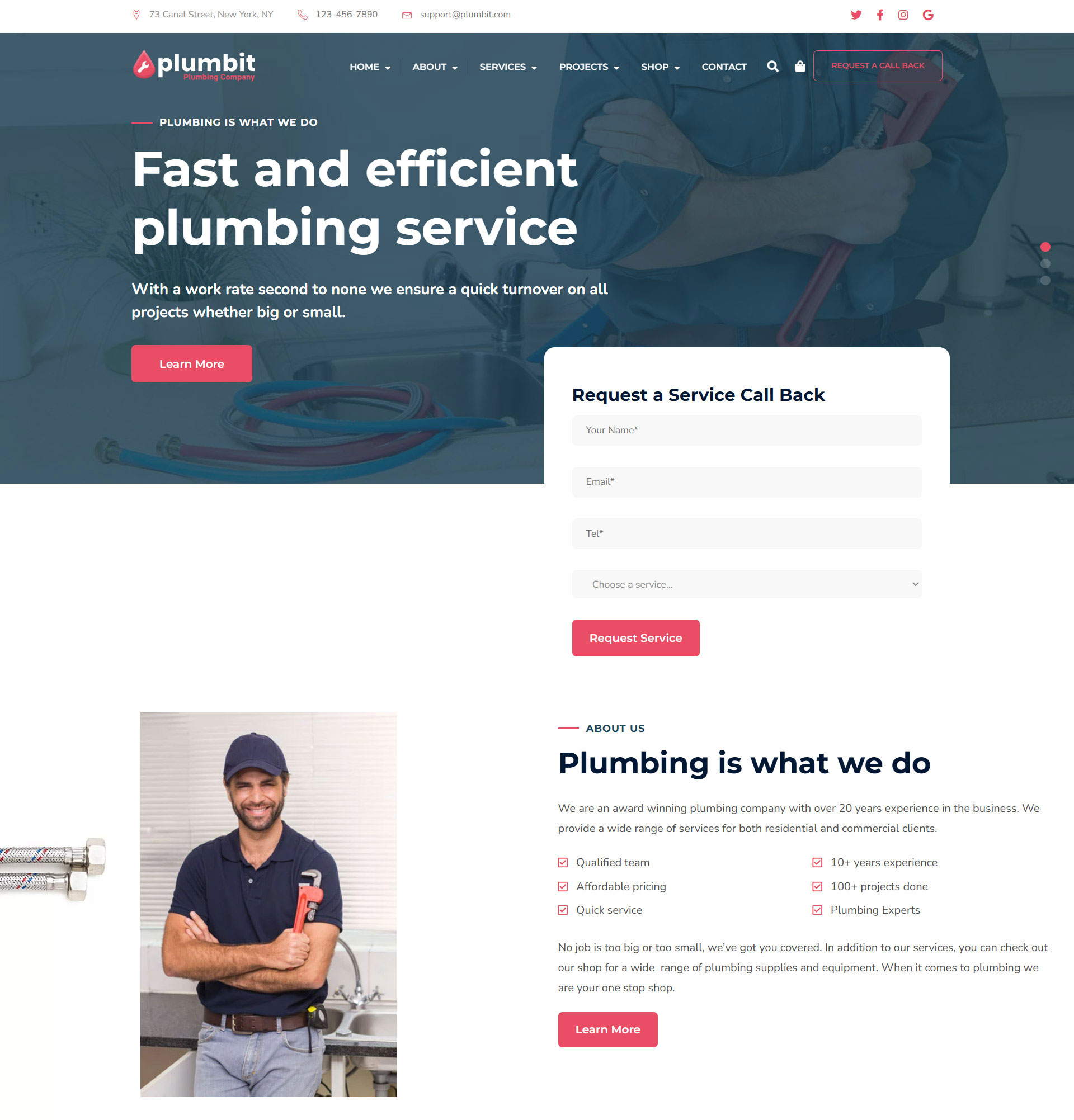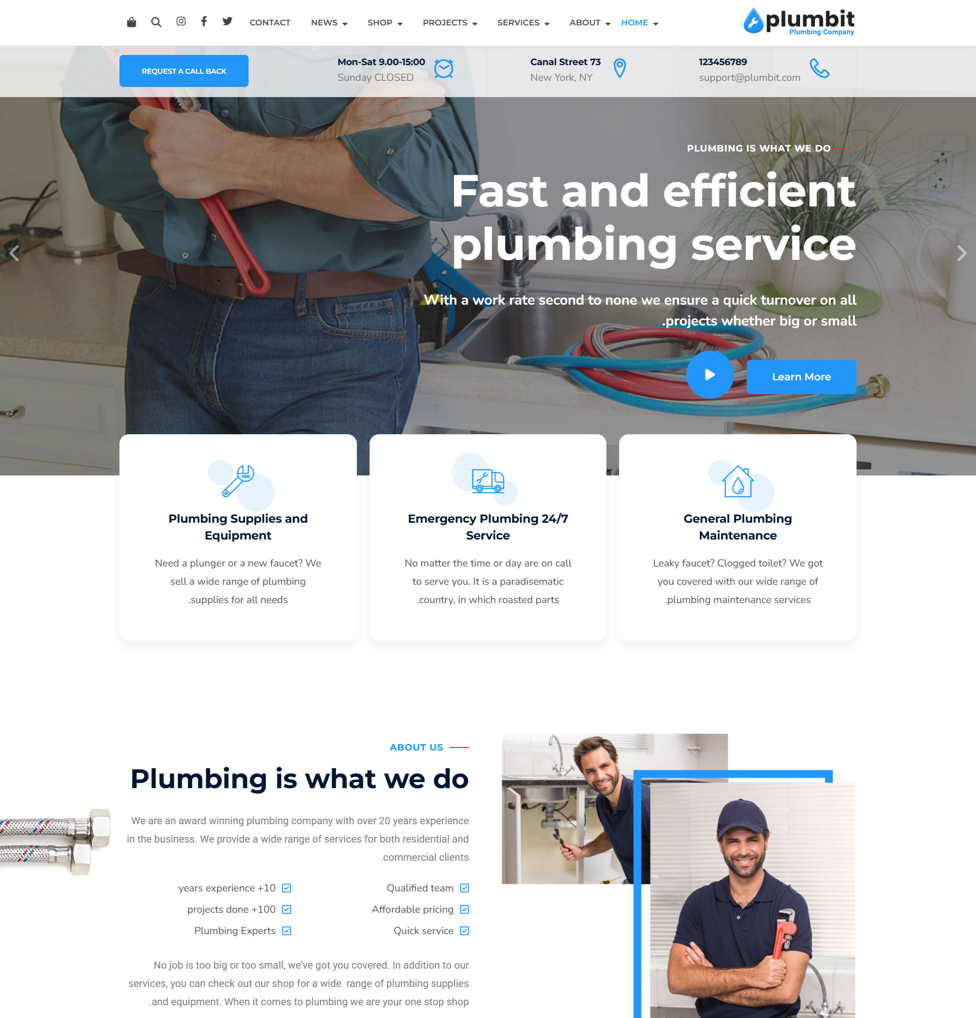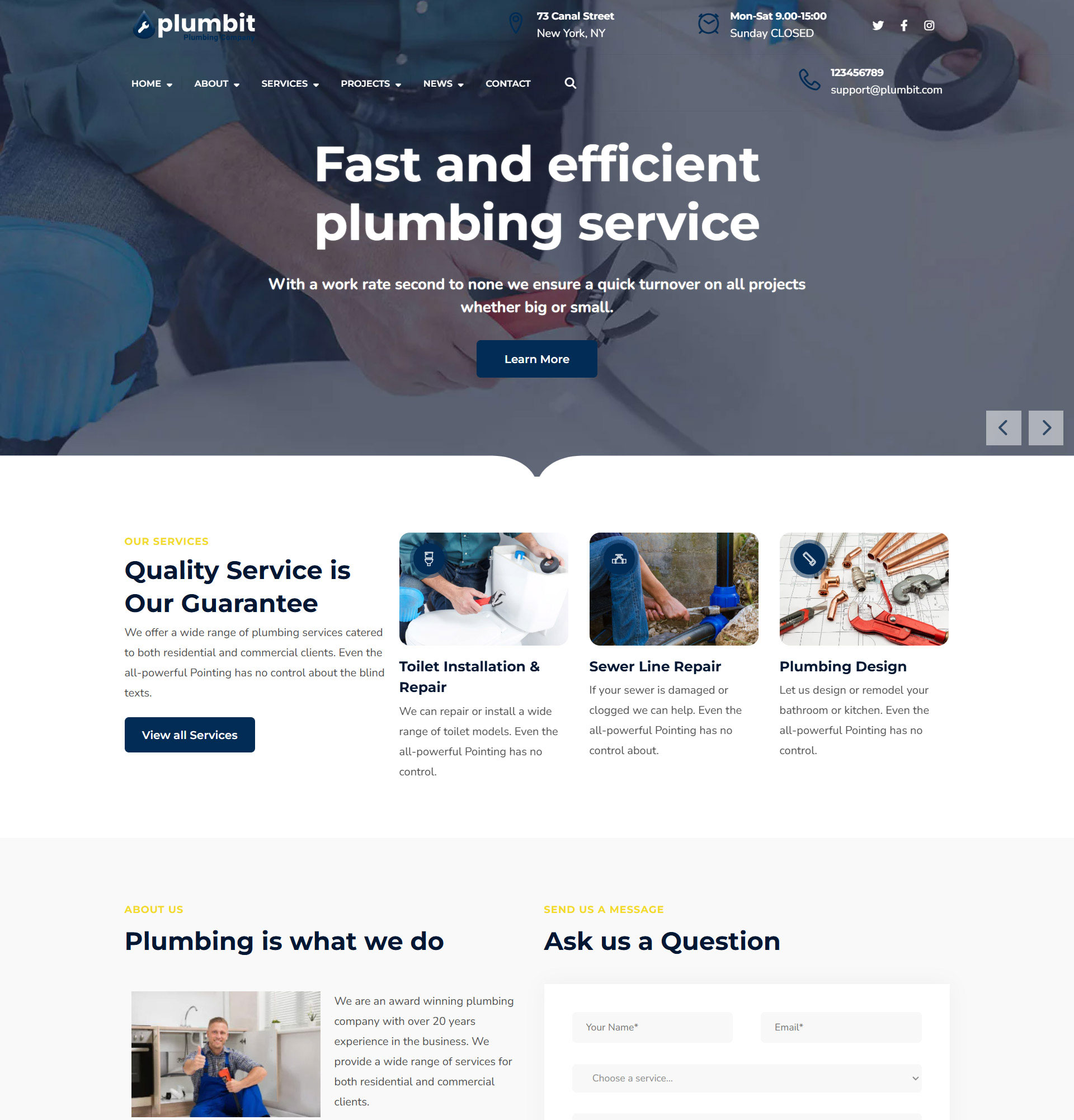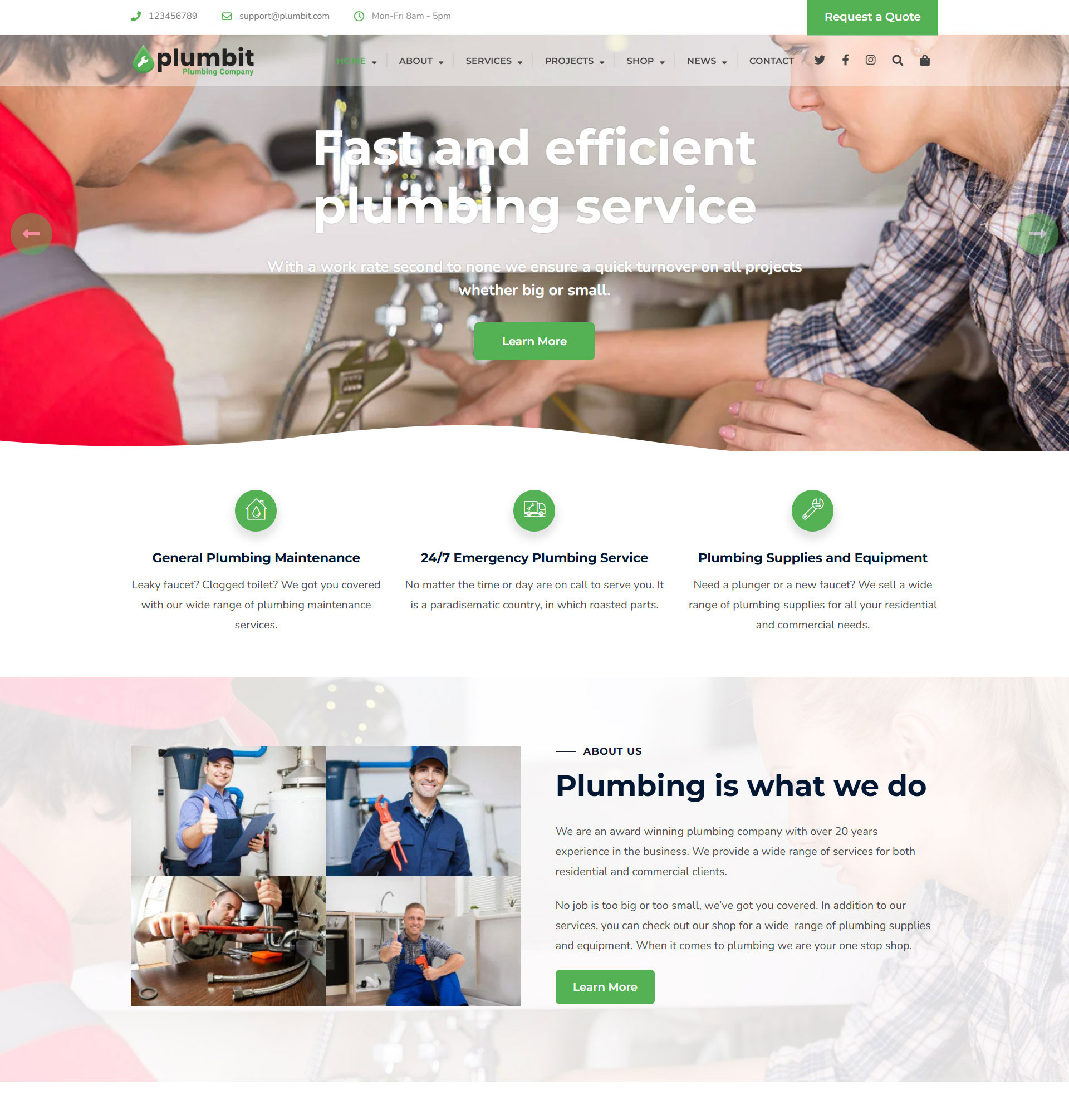 PlumbitPlumbing WordPress Theme Plumbit is a clean and modern WordPress theme designed especially for Plumbers, Plumbing Companies, Air Conditioning Repair, Heating Repair, Solar System Repair, Electricians, Painters or any other Construction & Repair service business. Purchase Now Preview Demos One Click Import Translation Ready Elementor Based Online Documentation 7 Ready-made homepage concepts Demo 1 Demo 2 Demo 3 Demo 4 Demo 5 Demo 6 Demo 1 (RTL)
